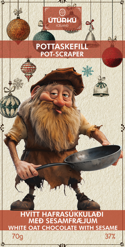 Skemmtileg mynd af Pottaskefli framan á og aftan á er stutt lýsing á jólasveininum á ensku. Sniðug gjöf fyrir erlenda vini eða bara fyrir einhvern sem vill gott súkkulaði.