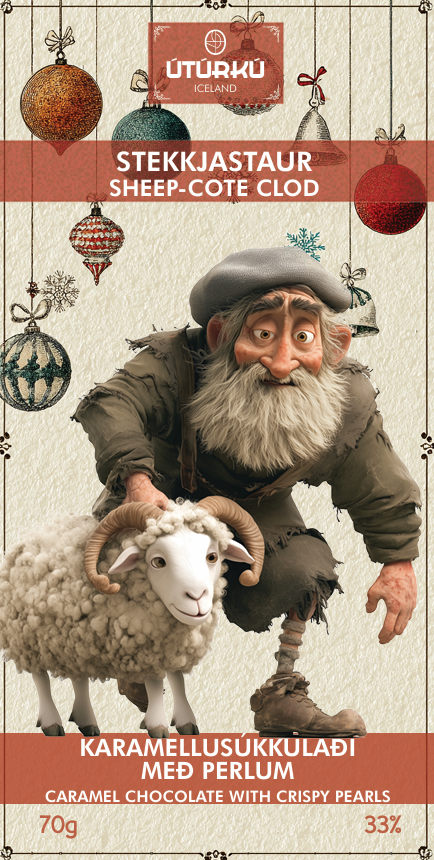 Sheep-Cote Clod (Stekkjastaur) is the first of the Icelandic Yule lads to arrive. He comes down from the mountains on the night of December 12th. He sneeks into sheepfolds at night, trying to suckle from the ewes, but because of his stiff legs, he was clumsy and rarely successful.